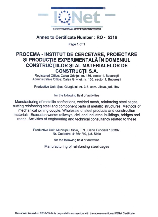 Racordul permanent la cele mai înalte standarde de calitate se reflectă în certificările pe care PROCEMA le-a obținut până astăzi. Acestea reprezintă garanția promisiunii de colaborare la standarde superioare și satisfacția clientului.